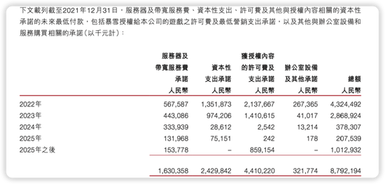 除了每年3亿多的暴雪代理费外,网易还要承诺未来每年投入不菲的服务器、宽带服务开支以及资本性支出。其中,2022年就高达43亿元。