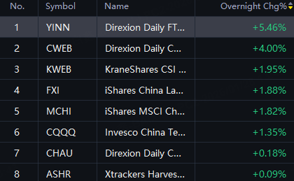 Chinese ADRs & ETFs jumped in overnight trading. YINN up 5%; CWEB, Li Auto and NIO up 4%; Kingsoft Cloud, Bilibili, XPeng, Alibaba and Netease up 3%.