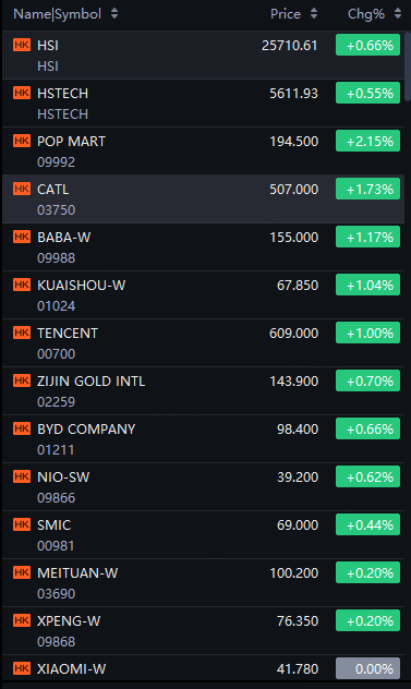 Pop Mart, CATL up 2%; Alibaba, Tencent, Kuaishou, BYD rose 1%.