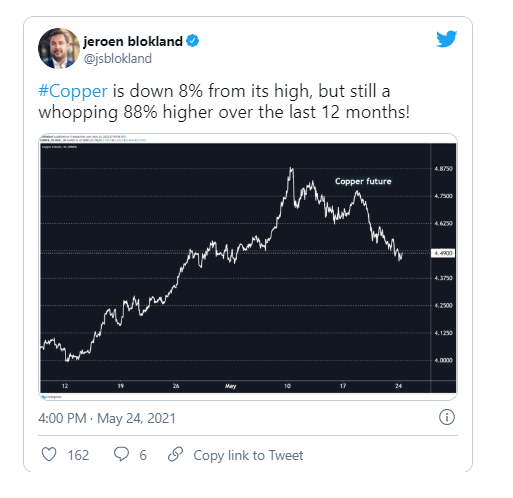 "Gold still has a couple of millennia of history as a store value going for it, bitcoin's environmental drawbacks should prove too large to overcome. The ESG [environmental, social and corporate governance] concerns have reversed the cryptocurrency just as the feared inflation is materializing," he added.