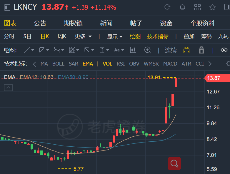 Luckin Coffee rose 11% On Tuesday, and has surged more than 50% in the past week.