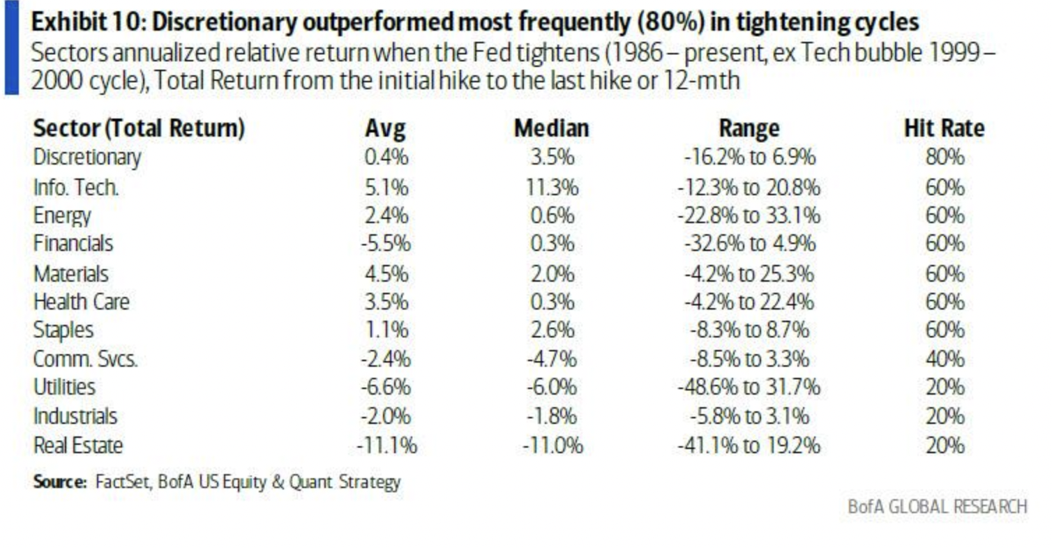历史上其他表现良好的行业包括科技、能源、材料和日常消费品。