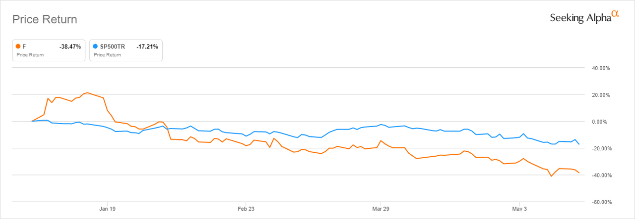 - Ford shares are down 1.4% in the premarket trading on Thursday. That gets the stock hovering around its 52-week low of $12.16, down 39% year-to-date.
