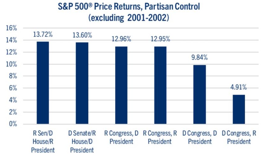 民调显示,民主党可能会失去对美国参众两院的控制权,股市可能会从另一个传统上有利的因素得到进一步提振:一个分裂的美国政府几乎会扼杀任何可能改变经济前景的重大立法。Bokeh Capital Partners首席投资官Kim Forrest表示:“美国政府分裂是件好事,政府什么事都做不成,未来两年也不会再有不确定性。当企业了解竞争环境时,它们就能运营,如果共和党人在民主党总统期间控制国会,那将给美国企业带来一些确定性。”
