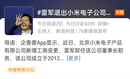 雷军也将亲自带队。2022年1月,雷军因退出小米电子公司董事长职务,迅速引发热议并登上热搜。