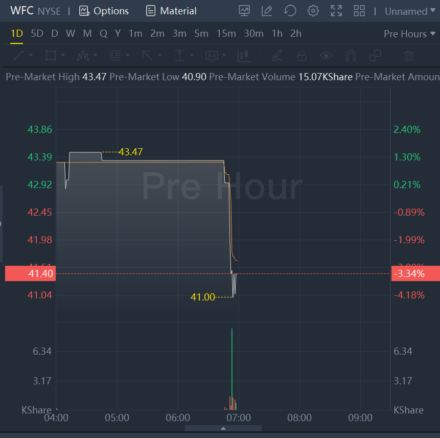 Wells Fargo shares slumped 3.34% on Q4 report.