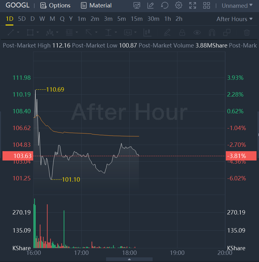 Indeed, Alphabet shares closed up 7% in Thursday's regular session, at $107.74, before retreating in after-hours trading.