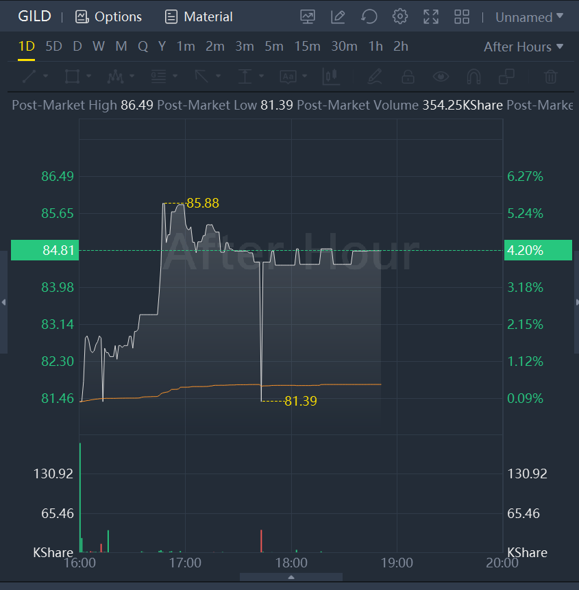 Gilead shares rose 4.2% to $84.81 in extended trading.