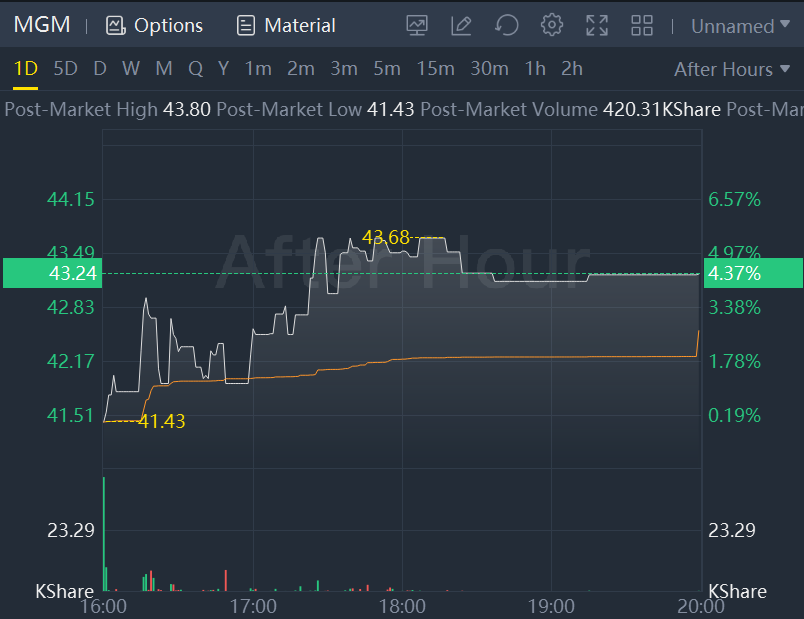 Shares of MGM Resorts International increased 4% to $43.24 in after-hours trading on Wednesday after the casino operator logged better-than-expected revenue for the fourth quarter and set a $2 billion share repurchase program.