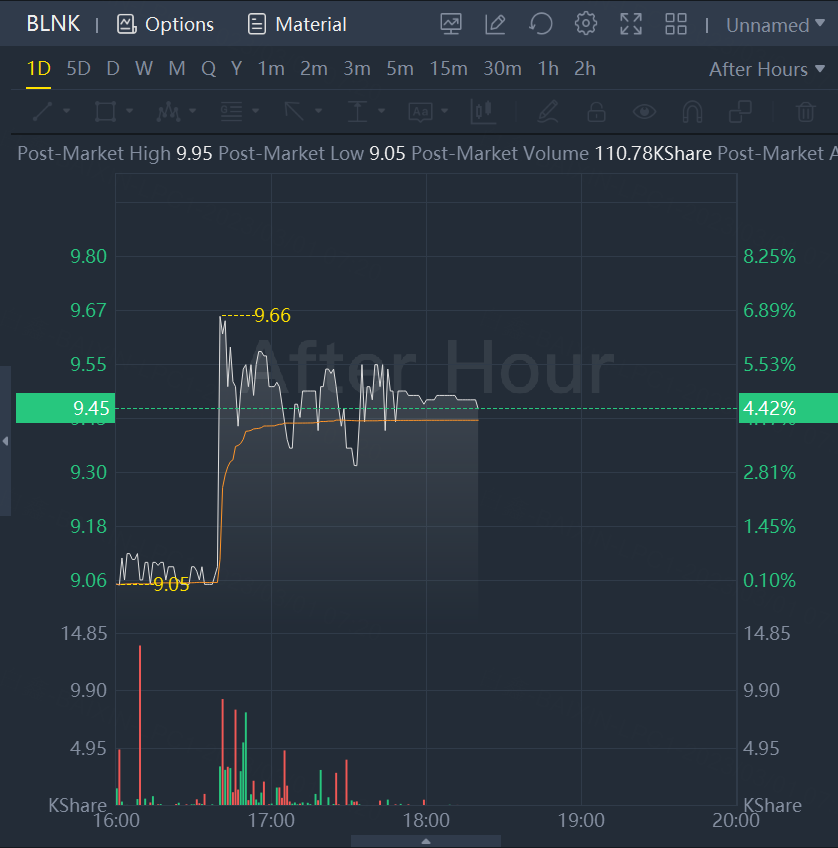 Blink Charging Co. shares rose 4.4% to $9.45 in after-market trading Tuesday following a surge in revenue in the latest quarter, reflecting demand for its products as consumer interest in electric vehicles grows.
