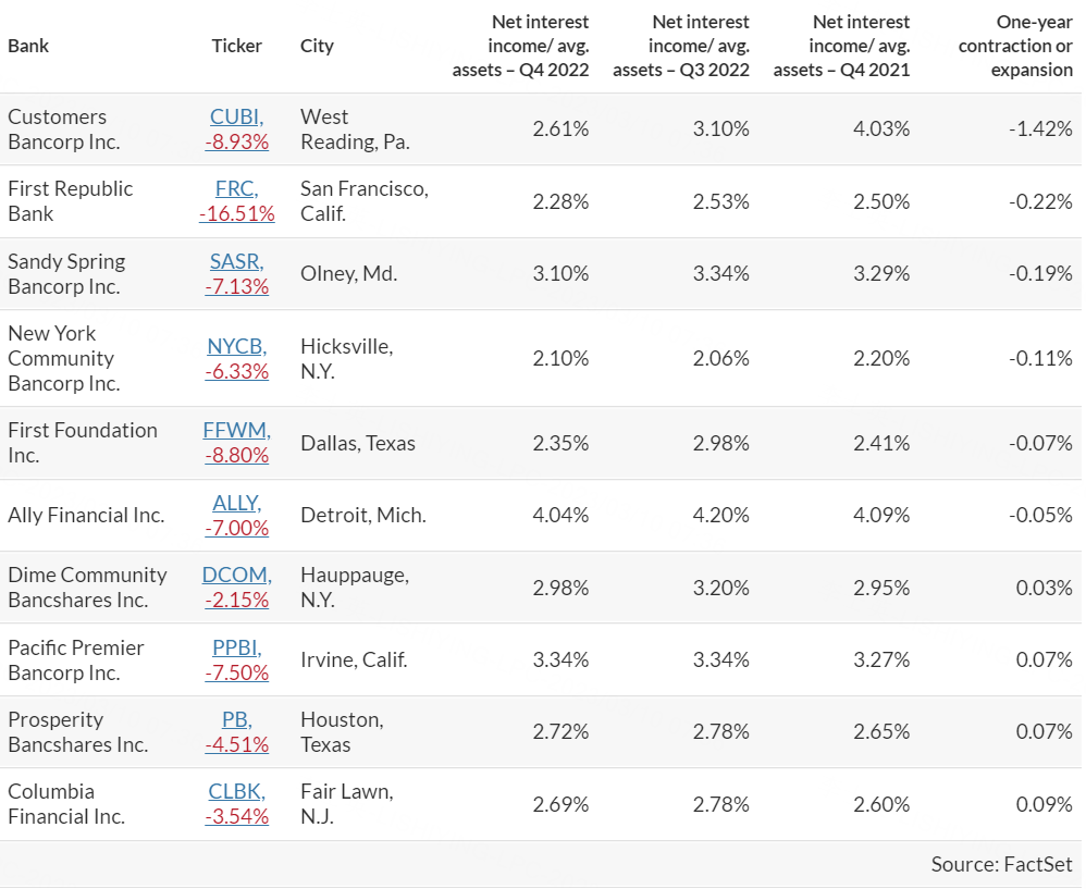 So now the question is which other banks might face pressure because their net interest margins have contracted, or because their margins have only expanded slighlty?