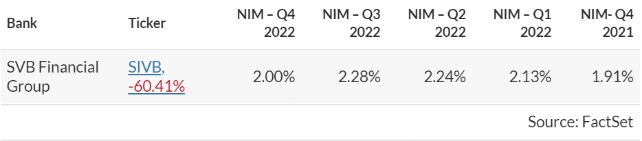 SVB's net interest margin narrowed considerably during the fourth quarter, and it widened only slightly from the year-earlier quarter.