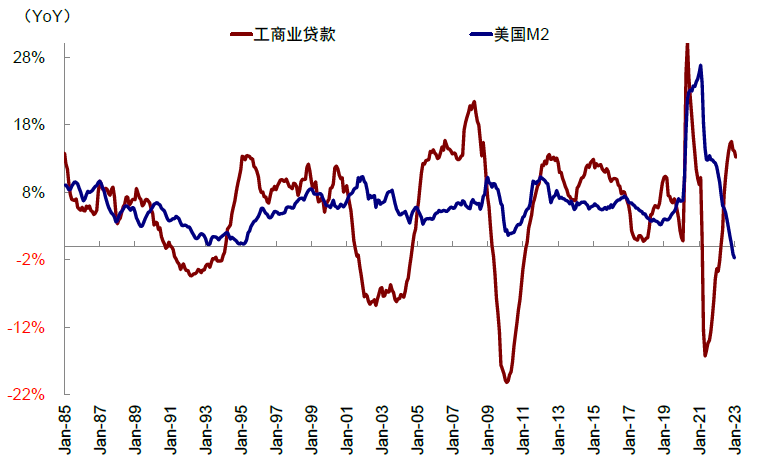 但我们整体的预计为美国增长大概率还是逐步放缓甚至走向衰退,而且进一步的银行系统问题如果加大衰退压力的话,从压制通胀角度也并非坏事,因为尽管M2已经转为负增长,但信贷增速依然过高可能也解释了通胀一直下行较慢。