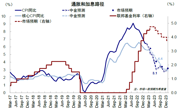 中金指出,加息终点临近,但降息路径仍有变数。在通胀回落和银行问题造成信用收缩的情况下,下半年可能逐步开启降息的大门。