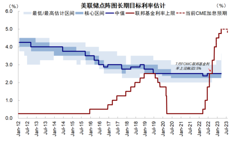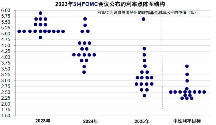 从结果上来看,美联储此次选择了“中间路线”:继续加息25bp到4.75~5%,但同时暗示加息可能逐步接近尾声。同时,点阵图中对于经济数据和未来加息路径的预测(点阵图)也变化不大。或许,面对加息与防风险之前的艰难平衡、且二者暂时都还没到马上要采取紧急行动的时刻,按兵不动式的“中间路线”也不失为一种选择,因为任何过激的应对反而会引发意想不到的市场反向博弈,同时过大的加息路径变化也容易使得美联储自己陷入没有腾挪空间的被动境地,例如美联储如果此次过分强调金融系统风险并停止加息的话,市场有可能在短暂的兴奋后开始担心是否存在未知的更大风险。