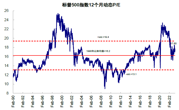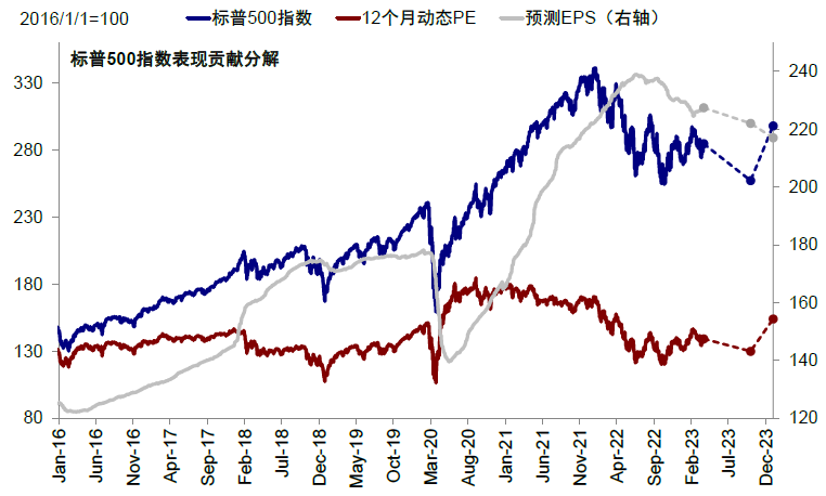 ► 美股:当前估值和盈利组合依然并不完全舒服。估值依然偏高(标普500 指数 12 个月动态估值 17.6倍,接近均值上方一倍标准差),同时盈利或继续承压(当前市场预期 2023 年标普500指数盈利增速已回落至 2.3%,我们测算或进一步回落至-5.6%),因此我们维持“欲扬先抑”的判断,但对后半年通胀逐步回落后美股的再度反弹前景并不悲观。