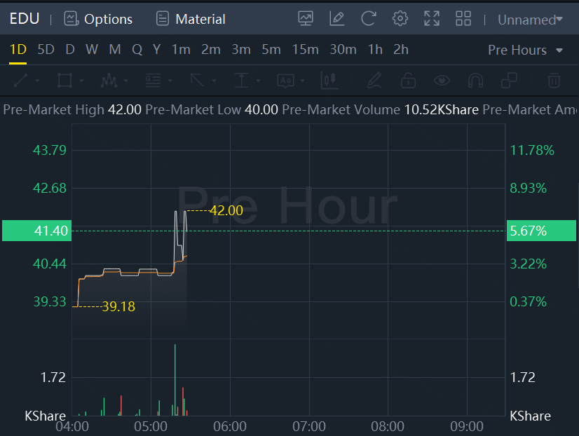 New Oriental Education shares jumped 5.7% in premarket trading.