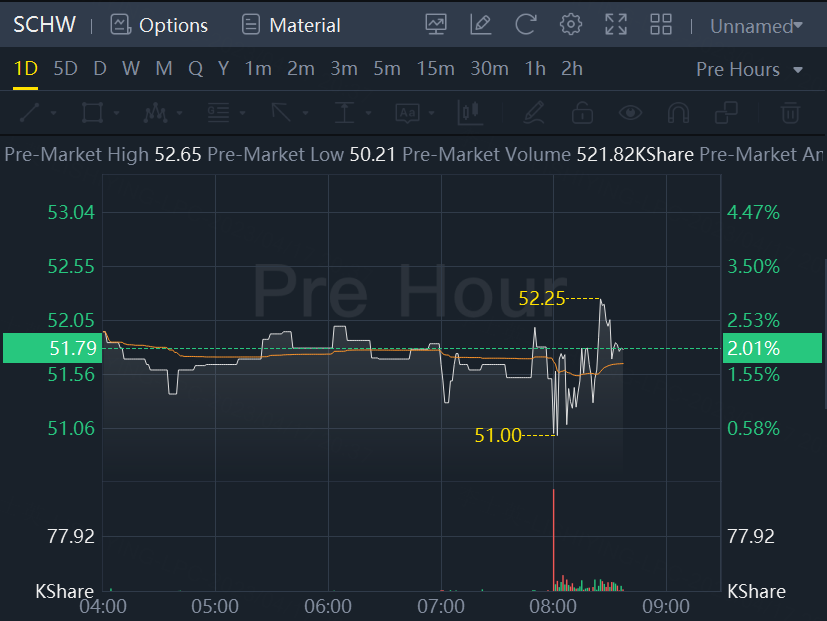Shares of Charles Schwab Corp. rose 2% in premarket trading Monday, after the discount broker and financial services company reported first-quarter profit that beat expectations, while revenue came up a bit shy.