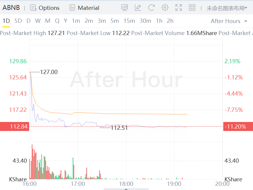 Airbnb $(ABNB)$ shares fell as much as 11.2% after hours, after rising 1% in the regular session to close at $127.07.
