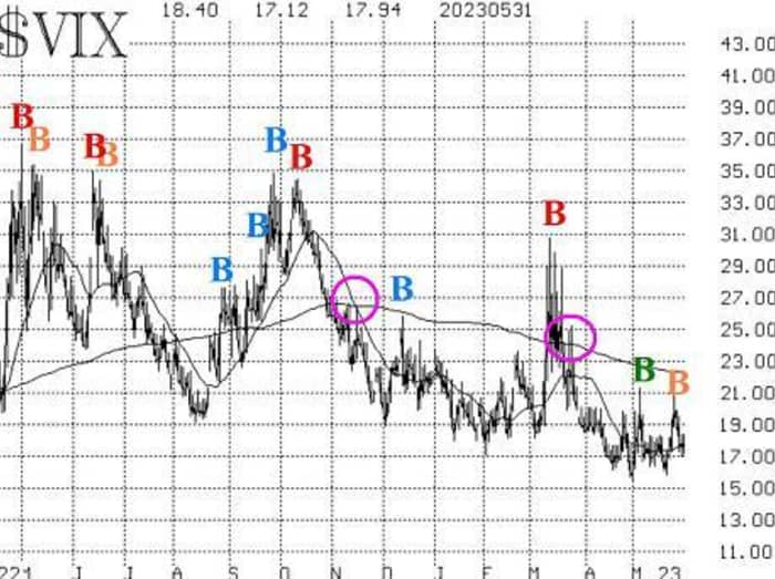 Long 1 SPY June (16th) 411 call and Short 1 SPY June (16th) 425 call: This spread was bought in line with the VIX “spike peak” buy signal of May 5th. Stop out of this position if VIX closes above 21.33. Otherwise, we will exit after holding for 22 trading days, a “deadline” which is approaching: if not stopped out, close out this position at the close of trading on Wednesday, June 7th.
