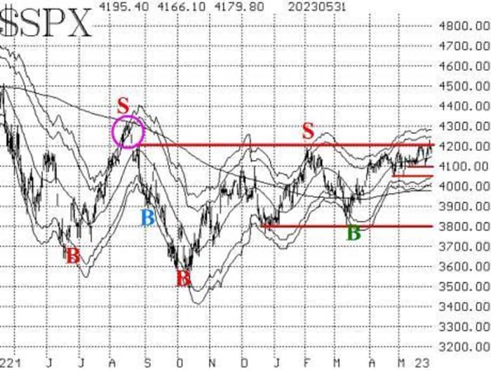 Even if that does occur, there is still the resistance at 4300, left over from the island gap (circled on the accompanying SPX chart). Above there, it should be easier sailing for the bulls if SPX can get to those levels. There have been several failed upside breakouts in the last 18 months, so there is reason for some caution.