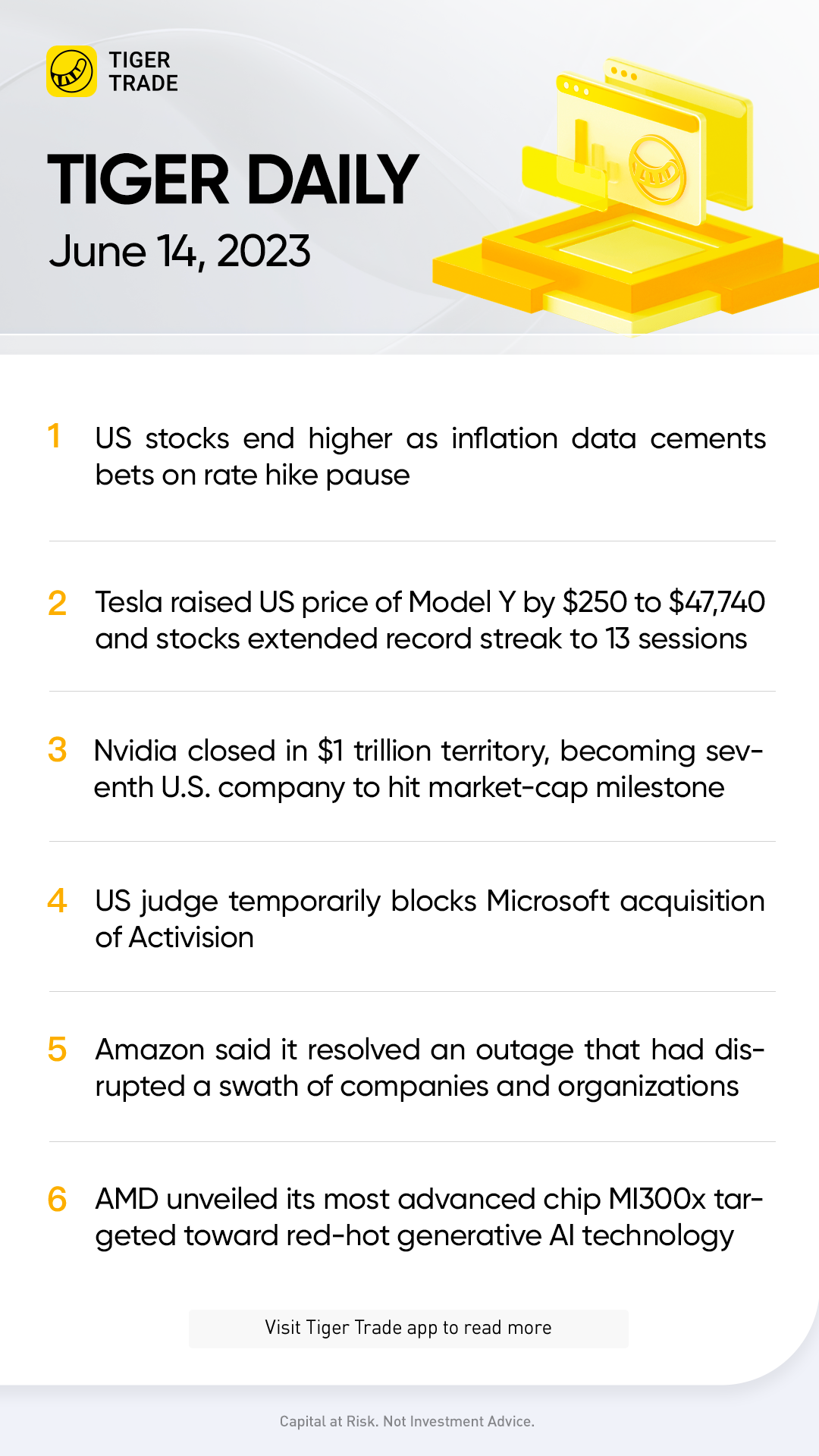 Nvidia jumped 3.9%, becoming the first chipmaker to end a trading session with a market capitalization above $1 trillion after smaller rival Advanced Micro Devices gave an update on its artificial intelligence strategy that failed to impress investors. AMD dropped 3.6%.