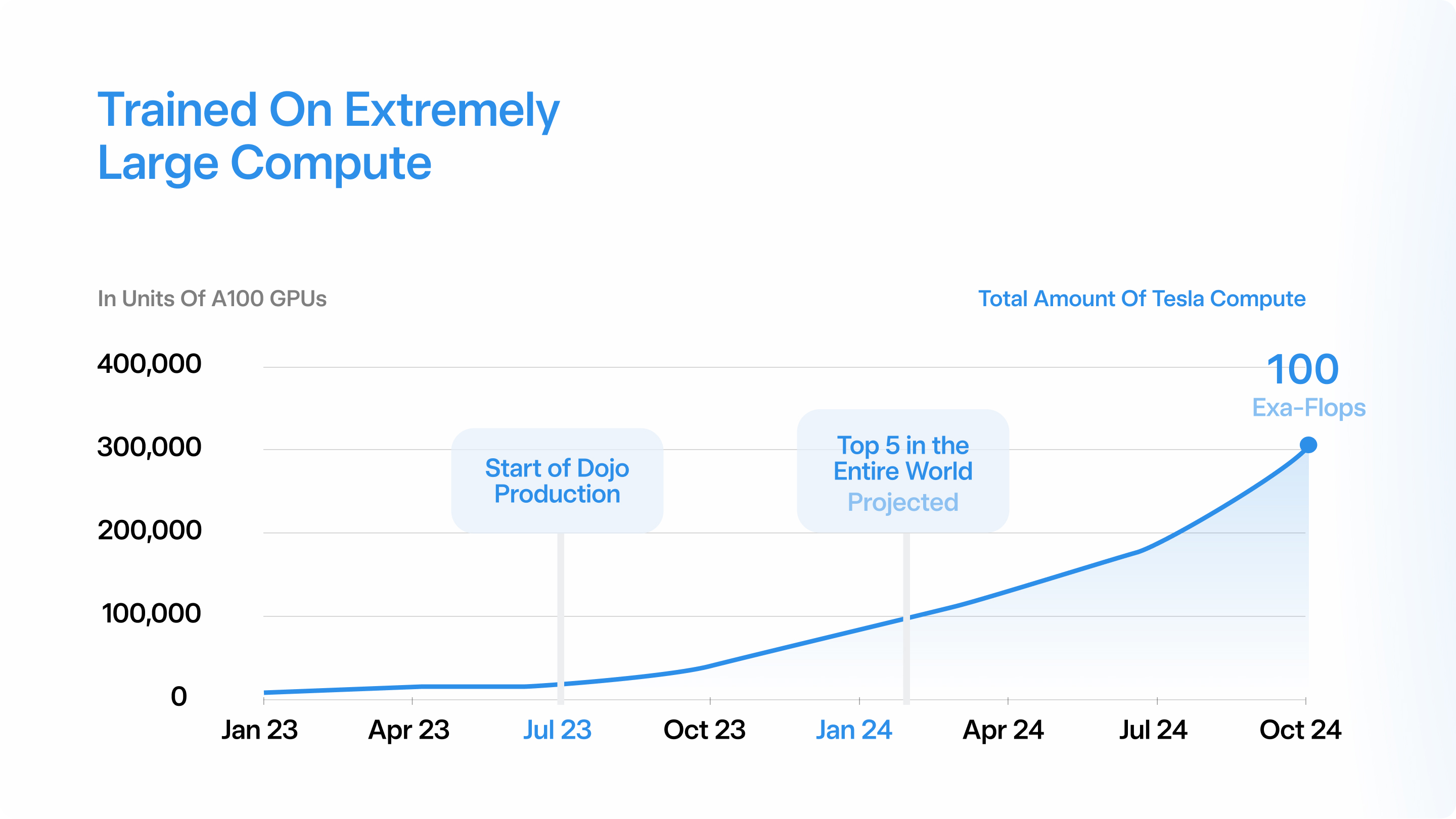 Notably, Tesla released its compute capacity forecast last week, projecting its AI supercomputer to reach 100 exaflops by October 2024, roughly 20 times more than the 4.5 exaflops it disclosed in September 2022, as shown in the below chart.