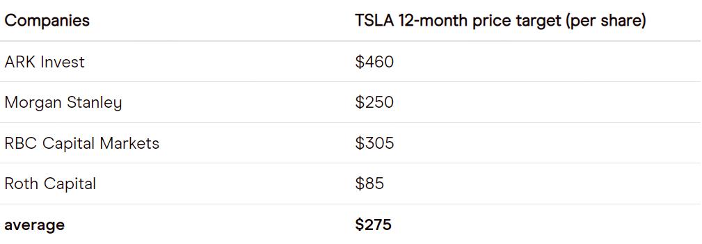 Their average 12-month price target for Tesla is $275, which is greater than the price target average from 33 analysts polled by SimplyWallSt, amounting to $212.73, but slightly lower than Tesla’s share price of $279.82 as of 5 July, suggesting that the stock might drop by approximately 1.43% over the next 12 months.