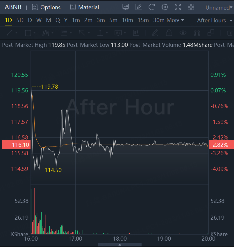 Airbnb shares were down 2.8% at $116.10 in extended trading.