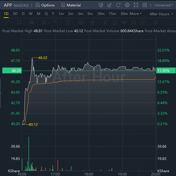 APP Price Action: Applovin shares were up 15.9% after hours.