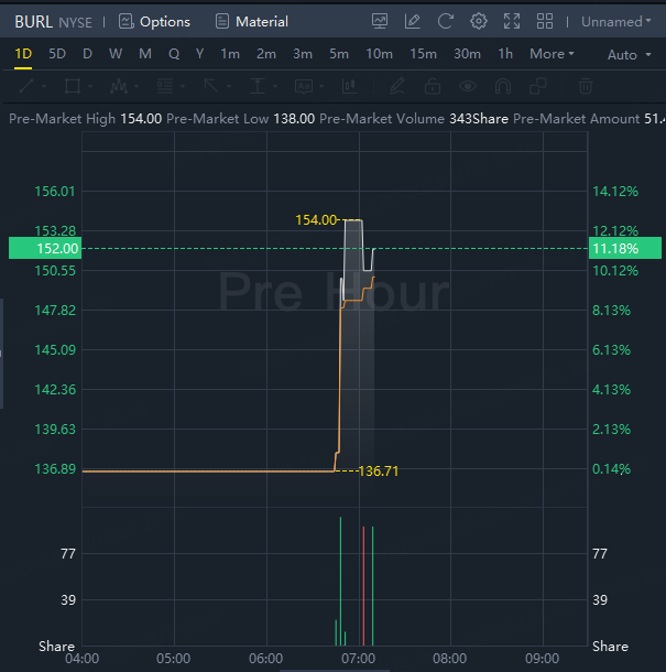 Shares of Burlington Stores Inc. $(BURL)$ leapt over 11% toward a two-month high in premarket trading Tuesday, after the discount apparel and footwear retailer topped profit and same-store sales expectations, and said the current quarter was off to a "solid" start.