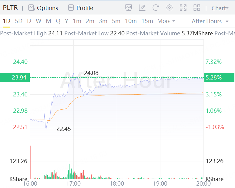 PLTR Price Action: Palantir shares were up more than 5% after hours at $23.94.