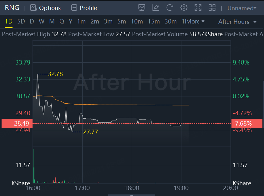 RingCentral Inc. shares fell 7.7% in the extended session Tuesday after the cloud-based communications company reported fourth-quarter earnings largely in line with Wall Street expectations, but its sales guidance for the year and for the current quarter fell short.