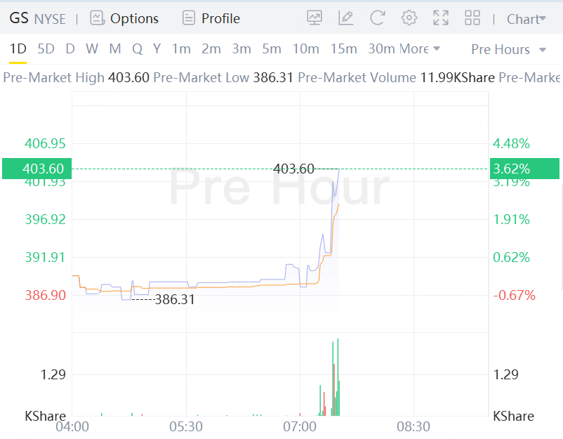 Goldman Sachs shares rose 3.62% in premarket trading.