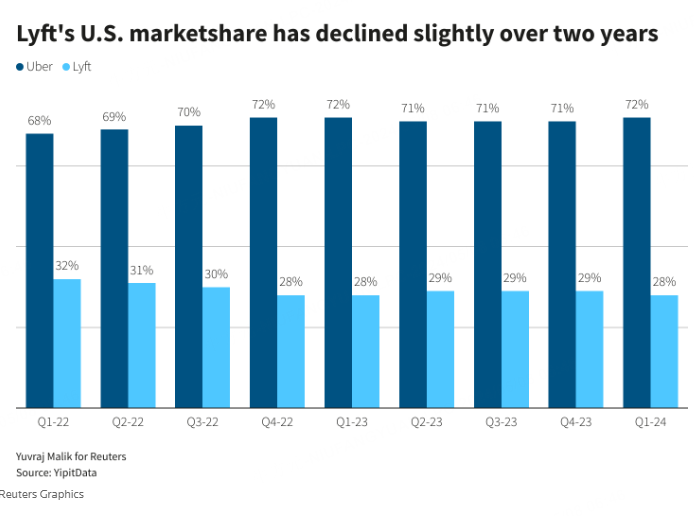 Lyft is benefiting from the industry-wide trend of a pickup in ride-hailing demand and its strong execution of new functionalities, Risher told Reuters in an interview.
