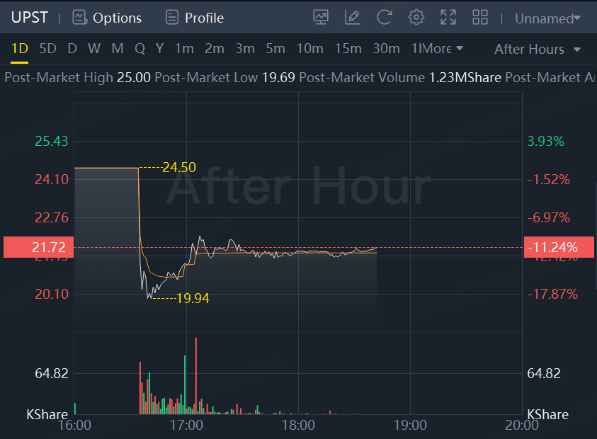 Upstart shares were halted trading ahead of the report’s release, and they were falling about 11% once the halt was lifted.
