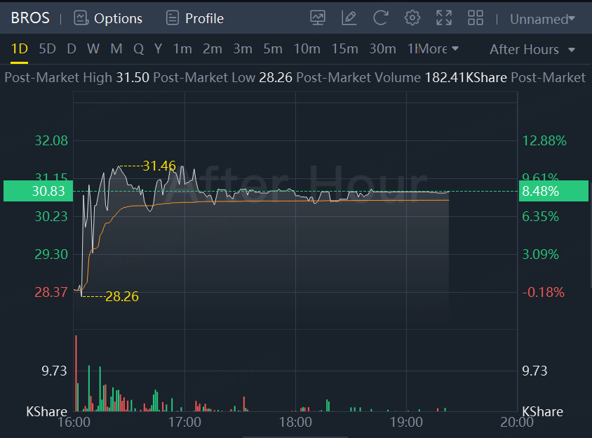 For the first quarter, Dutch Bros reported net income of $16.2 million, or 8 cents a share, contrasting with a loss of $9.4 million, or 7 cents a share, in the same quarter last year. Adjusted for things like stock-based compensation, earnings per share came in at 9 cents.