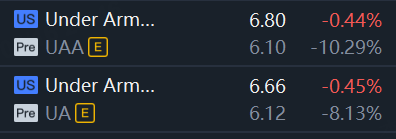 Shares of Under Armour were down 10% in premarket trading, after having fallen about 22% so far this year.
