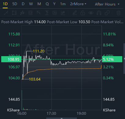 The company's stock rose 5.1% to $108.95, after hours. It closed the regular session at $103.64, down about 1%.