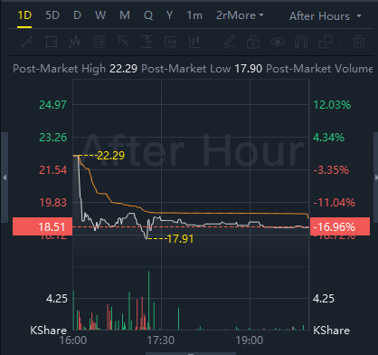 After the bell, the stock was down almost 17%. Shares ended Wednesday's trading session at $22.29 and are down about 6% since the beginning of the year.