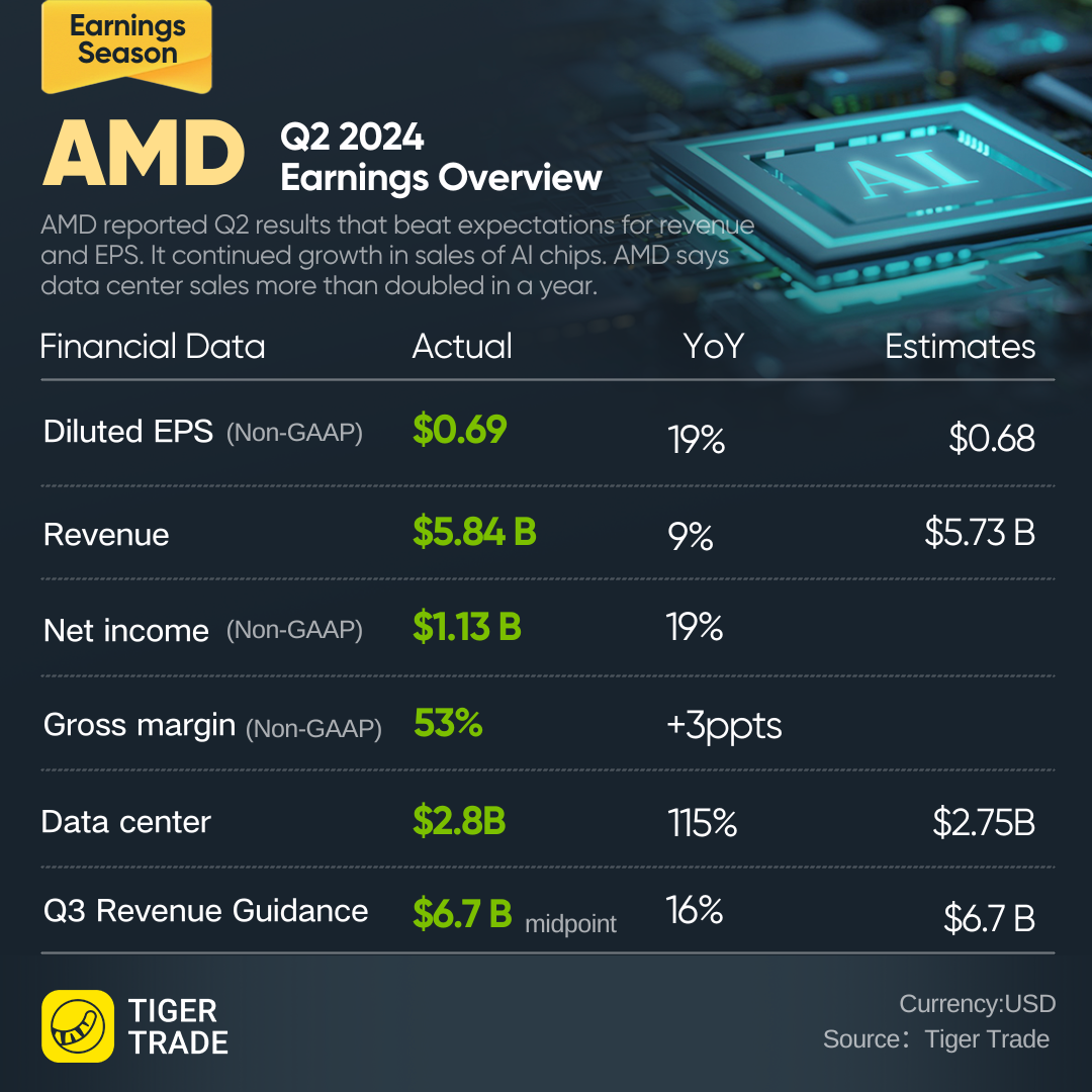 Overall, AMD forecast revenue of $6.7 billion, plus or minus $300 million, for the third quarter compared with analysts' average estimate of $6.61 billion, according to LSEG data.
