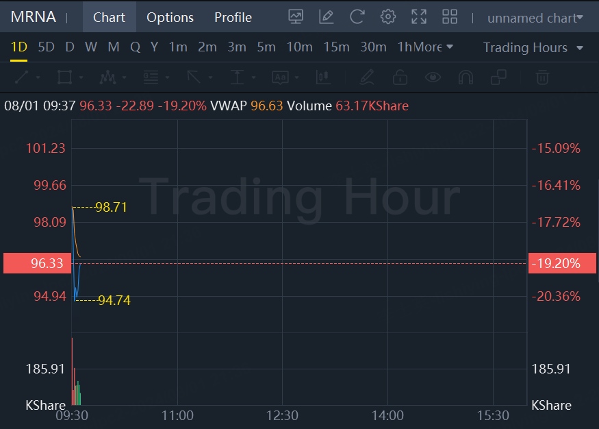 Moderna reported a net loss of $1.3 billion, or $3.33 per share, for the second quarter. Analysts had expected a loss of $3.39 per share, according to LSEG data.