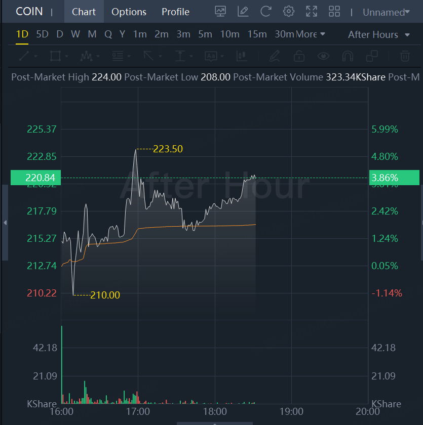 Coinbase shares rose 4% in after hours trading.