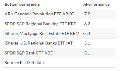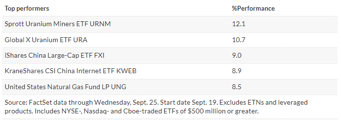 As usual, here's your look at the top- and bottom-performing ETFs over the past week through Wednesday, according to FactSet data.