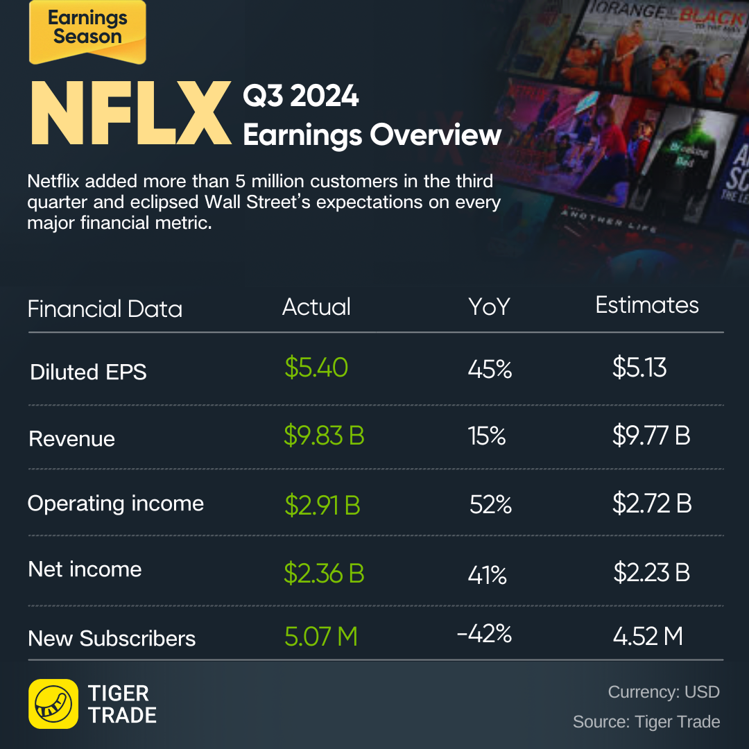 Sales for the period grew 15% to $9.83 billion, the company said in a Thursday, while earnings increased to $5.40 a share. Analysts were predicting Netflix would add 4.52 million subscribers.