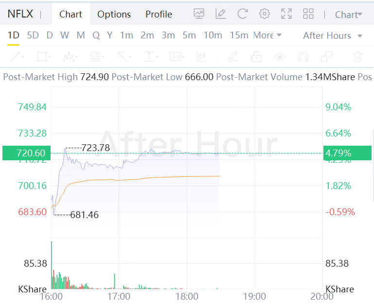 Shares of Netflix rose as much as 4.79% to $720.60 in after-hours trading. The stock has more than quadrupled since May 2022, when a slowdown in the company’s growth led to a major selloff and spooked investors about the entertainment business.