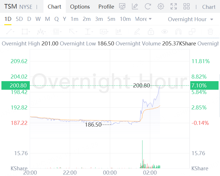 TSMC’s U.S.-listed shares rose 7.1% in overnight trading. Other chips stocks also rallied after TSMC’s earnings. Super Micro, ASML rose more than 3%; Nvidia rose 2.7%.