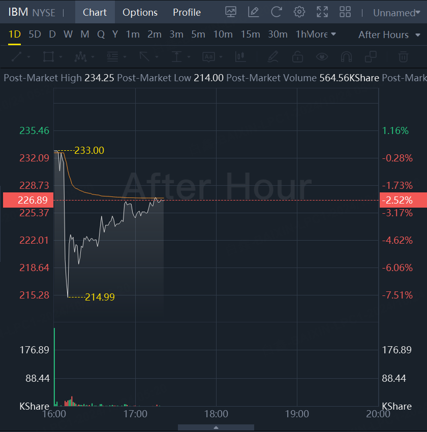 IBM's shares fell about 2.5% in extended trading after rising more than 40% this year, as investors bet on the company's potential to benefit from generative AI through its software and consulting services.