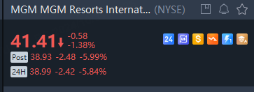 MGM posted adjusted quarterly earnings per share of 54 cents, compared with analysts' estimates of 61 cents, according to data compiled by LSEG.
