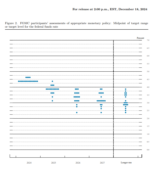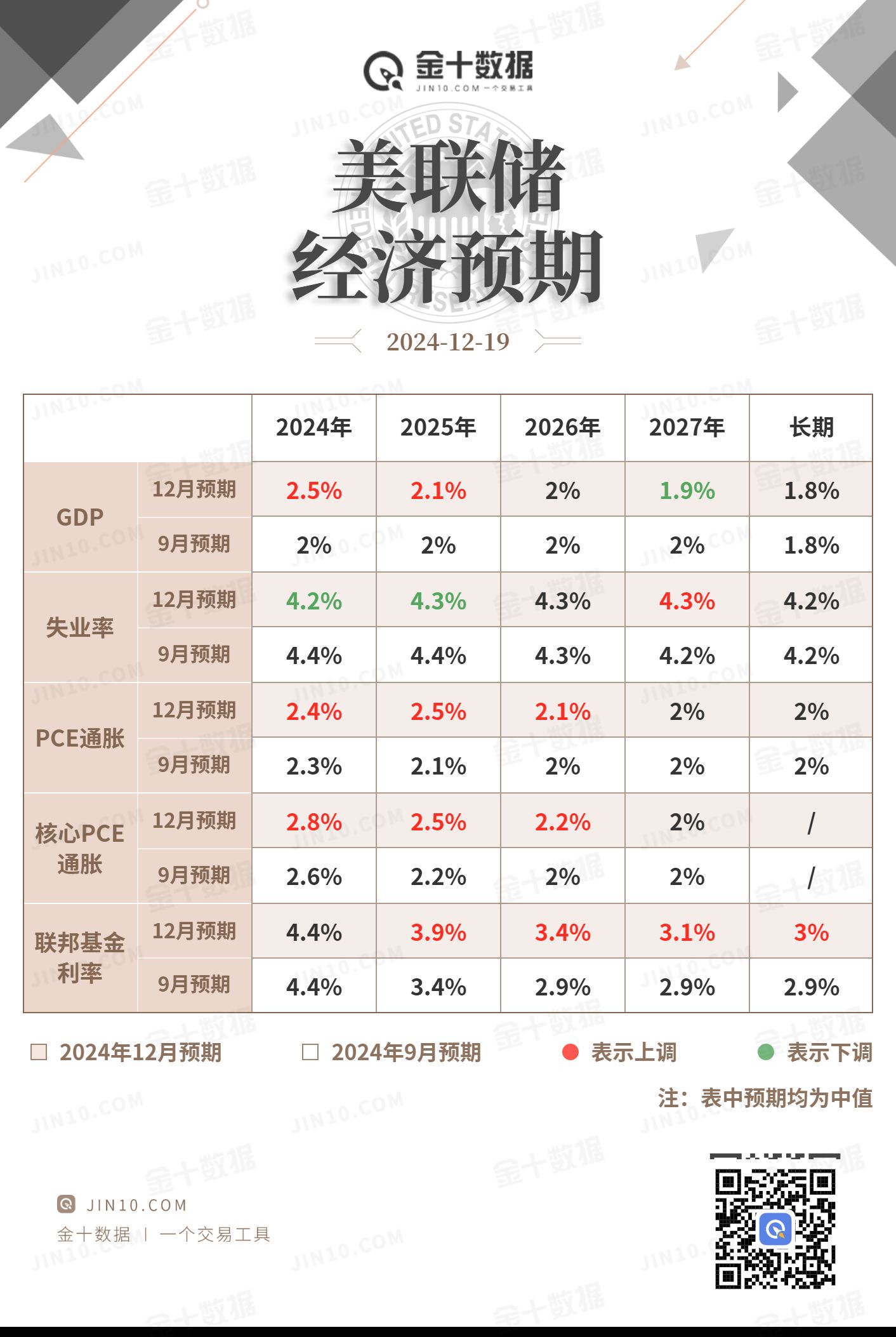 美联储政策声明中增加了“幅度和时间”这一措辞,暗示将放缓降息步伐;点阵图显示,明年降息次数减少,通胀达标时间推迟。